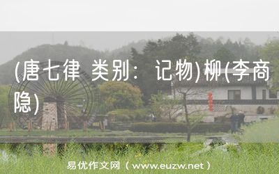 (唐七律 類別:記物)柳(李商隱)由易優(yōu)作文(易優(yōu)悅讀)為大家精心整理發(fā)布,學(xué)作文,學(xué)閱讀,提升語文閱讀寫作能力,就來易優(yōu)悅讀。作文培訓(xùn),閱讀培訓(xùn),易優(yōu)悅讀助力每個孩子成為語文學(xué)霸。