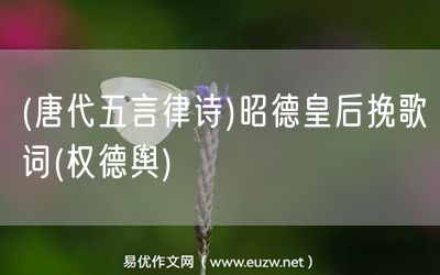 (唐代五言律詩(shī))昭德皇后挽歌詞(權(quán)德輿)由易優(yōu)作文(易優(yōu)悅讀)為大家精心整理發(fā)布,學(xué)作文,學(xué)閱讀,提升語(yǔ)文閱讀寫作能力,就來易優(yōu)悅讀。作文培訓(xùn),閱讀培訓(xùn),易優(yōu)悅讀助力每個(gè)孩子成為語(yǔ)文學(xué)霸。
