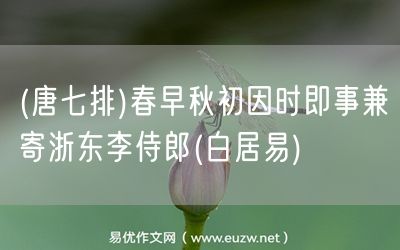 易優(yōu)作文網(wǎng)——(唐七排)春早秋初因時(shí)即事兼寄浙東李侍郎(白居易)