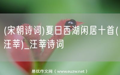 易優(yōu)作文網(wǎng)——(宋朝詩詞)夏日西湖閑居十首(汪莘)_汪莘詩詞