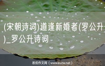 易優(yōu)作文網(wǎng)——(宋朝詩詞)道逢新婚者(羅公升)_羅公升詩詞