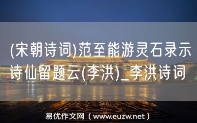 易優(yōu)作文網(wǎng)——(宋朝詩詞)范至能游靈石錄示詩仙留題云(李洪)_李洪詩詞