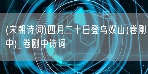 (宋朝詩(shī)詞)四月二十日登烏奴山(卷剛中)_卷剛中詩(shī)詞