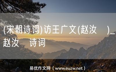易優(yōu)作文網(wǎng)——(宋朝詩詞)訪王廣文(趙汝鐩)_趙汝鐩詩詞