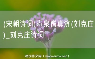 (宋朝詩詞)寄泉僧真濟(jì)(劉克莊)由易優(yōu)作文(易優(yōu)悅讀)為大家精心整理發(fā)布,學(xué)作文,學(xué)閱讀,提升語文閱讀寫作能力,就來易優(yōu)悅讀。作文培訓(xùn),閱讀培訓(xùn),易優(yōu)悅讀助力每個(gè)孩子成為語文學(xué)霸。