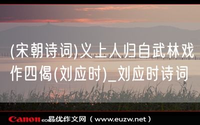 (宋朝詩詞)義上人歸自武林戲作四偈(劉應時)由易優(yōu)作文(易優(yōu)悅讀)為大家精心整理發(fā)布,學作文,學閱讀,提升語文閱讀寫作能力,就來易優(yōu)悅讀。作文培訓,閱讀培訓,易優(yōu)悅讀助力每個孩子成為語文學霸。