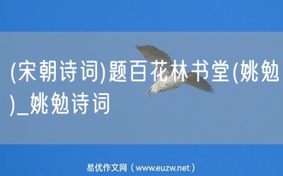 (宋朝詩(shī)詞)題百花林書堂(姚勉)由易優(yōu)作文(易優(yōu)悅讀)為大家精心整理發(fā)布,學(xué)作文,學(xué)閱讀,提升語(yǔ)文閱讀寫作能力,就來(lái)易優(yōu)悅讀。作文培訓(xùn),閱讀培訓(xùn),易優(yōu)悅讀助力每個(gè)孩子成為語(yǔ)文學(xué)霸。