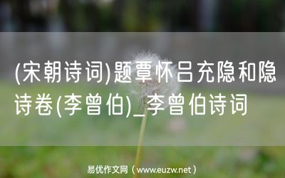 (宋朝詩(shī)詞)題覃懷呂充隱和隱詩(shī)卷(李曾伯)由易優(yōu)作文(易優(yōu)悅讀)為大家精心整理發(fā)布,學(xué)作文,學(xué)閱讀,提升語(yǔ)文閱讀寫(xiě)作能力,就來(lái)易優(yōu)悅讀。作文培訓(xùn),閱讀培訓(xùn),易優(yōu)悅讀助力每個(gè)孩子成為語(yǔ)文學(xué)霸。