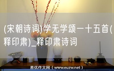 (宋朝詩詞)學(xué)無學(xué)頌一十五首(釋印肅)由易優(yōu)作文(易優(yōu)悅讀)為大家精心整理發(fā)布,學(xué)作文,學(xué)閱讀,提升語文閱讀寫作能力,就來易優(yōu)悅讀。作文培訓(xùn),閱讀培訓(xùn),易優(yōu)悅讀助力每個(gè)孩子成為語文學(xué)霸。