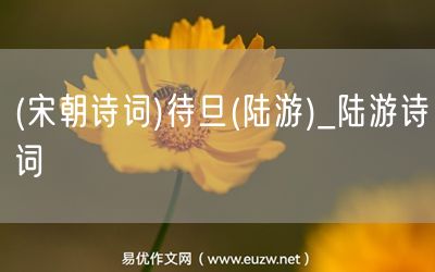 (宋朝詩詞)待旦(陸游)由易優(yōu)作文(易優(yōu)悅讀)為大家精心整理發(fā)布,學(xué)作文,學(xué)閱讀,提升語文閱讀寫作能力,就來易優(yōu)悅讀。作文培訓(xùn),閱讀培訓(xùn),易優(yōu)悅讀助力每個(gè)孩子成為語文學(xué)霸。
