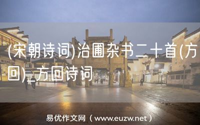 (宋朝詩(shī)詞)治圃雜書(shū)二十首(方回)由易優(yōu)作文(易優(yōu)悅讀)為大家精心整理發(fā)布,學(xué)作文,學(xué)閱讀,提升語(yǔ)文閱讀寫(xiě)作能力,就來(lái)易優(yōu)悅讀。作文培訓(xùn),閱讀培訓(xùn),易優(yōu)悅讀助力每個(gè)孩子成為語(yǔ)文學(xué)霸。