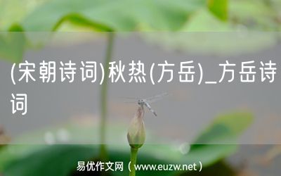 (宋朝詩詞)秋熱(方岳)由易優(yōu)作文(易優(yōu)悅讀)為大家精心整理發(fā)布,學作文,學閱讀,提升語文閱讀寫作能力,就來易優(yōu)悅讀。作文培訓,閱讀培訓,易優(yōu)悅讀助力每個孩子成為語文學霸。