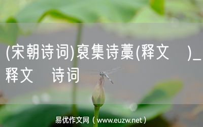 (宋朝詩(shī)詞)裒集詩(shī)藁(釋文珦)由易優(yōu)作文(易優(yōu)悅讀)為大家精心整理發(fā)布,學(xué)作文,學(xué)閱讀,提升語(yǔ)文閱讀寫(xiě)作能力,就來(lái)易優(yōu)悅讀。作文培訓(xùn),閱讀培訓(xùn),易優(yōu)悅讀助力每個(gè)孩子成為語(yǔ)文學(xué)霸。