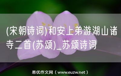 (宋朝詩詞)和安上弟游湖山諸寺二首(蘇頌)由易優(yōu)作文(易優(yōu)悅讀)為大家精心整理發(fā)布,學(xué)作文,學(xué)閱讀,提升語文閱讀寫作能力,就來易優(yōu)悅讀。作文培訓(xùn),閱讀培訓(xùn),易優(yōu)悅讀助力每個(gè)孩子成為語文學(xué)霸。