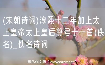 易優(yōu)作文網(wǎng)——(宋朝詩詞)淳熙十二年加上太上皇帝太上皇后尊號十一首(佚名)_佚名詩詞