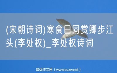 易優(yōu)作文網(wǎng)——(宋朝詩詞)寒食日同賞卿步江頭(李處權(quán))_李處權(quán)詩詞