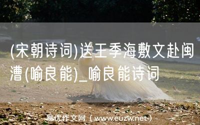 (宋朝詩詞)送鄭吏部出使二首(曹勛)由易優(yōu)作文(易優(yōu)悅讀)為大家精心整理發(fā)布,學作文,學閱讀,提升語文閱讀寫作能力,就來易優(yōu)悅讀。作文培訓,閱讀培訓,易優(yōu)悅讀助力每個孩子成為語文學霸。