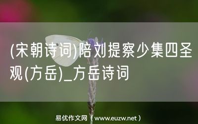 (宋朝詩(shī)詞)陪劉提察少集四圣觀(方岳)由易優(yōu)作文(易優(yōu)悅讀)為大家精心整理發(fā)布,學(xué)作文,學(xué)閱讀,提升語(yǔ)文閱讀寫作能力,就來(lái)易優(yōu)悅讀。作文培訓(xùn),閱讀培訓(xùn),易優(yōu)悅讀助力每個(gè)孩子成為語(yǔ)文學(xué)霸。