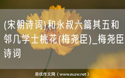 易優(yōu)作文網(wǎng)——(宋朝詩詞)和永叔六篇其五和鄰幾學(xué)士桃花(梅堯臣)_梅堯臣詩詞