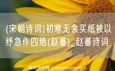 易優(yōu)作文網(wǎng)——(宋朝詩詞)初寒無衾買紙被以紓急作四絕(趙蕃)_趙蕃詩詞