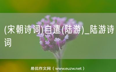 (宋朝詩詞)自遣(陸游)由易優(yōu)作文(易優(yōu)悅讀)為大家精心整理發(fā)布,學(xué)作文,學(xué)閱讀,提升語文閱讀寫作能力,就來易優(yōu)悅讀。作文培訓(xùn),閱讀培訓(xùn),易優(yōu)悅讀助力每個孩子成為語文學(xué)霸。