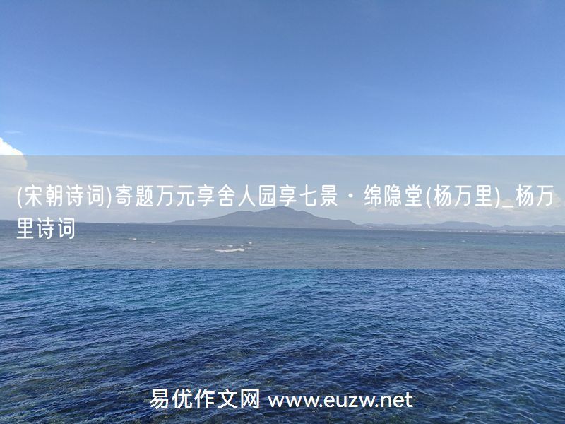 易優(yōu)作文網(wǎng)——(宋朝詩詞)寄題萬元享舍人園享七景·綿隱堂(楊萬里)_楊萬里詩詞