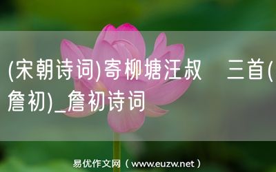 易優(yōu)作文網(wǎng)——(宋朝詩詞)寄柳塘汪叔畊三首(詹初)_詹初詩詞