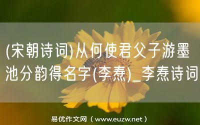 易優(yōu)作文網(wǎng)——(宋朝詩詞)從何使君父子游墨池分韻得名字(李燾)_李燾詩詞
