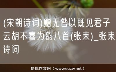 易優(yōu)作文網(wǎng)——(宋朝詩詞)贈無咎以既見君子云胡不喜為韻八首(張耒)_張耒詩詞