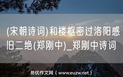 易優(yōu)作文網(wǎng)——(宋朝詩(shī)詞)和樓樞密過(guò)洛陽(yáng)感舊二絕(鄭剛中)_鄭剛中詩(shī)詞