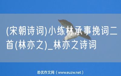 (宋朝詩(shī)詞)小練林承事挽詞二首(林亦之)由易優(yōu)作文(易優(yōu)悅讀)為大家精心整理發(fā)布,學(xué)作文,學(xué)閱讀,提升語(yǔ)文閱讀寫(xiě)作能力,就來(lái)易優(yōu)悅讀。作文培訓(xùn),閱讀培訓(xùn),易優(yōu)悅讀助力每個(gè)孩子成為語(yǔ)文學(xué)霸。