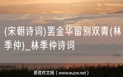 (宋朝詩詞)罷金華留別雙青(林季仲)由易優(yōu)作文(易優(yōu)悅讀)為大家精心整理發(fā)布,學(xué)作文,學(xué)閱讀,提升語文閱讀寫作能力,就來易優(yōu)悅讀。作文培訓(xùn),閱讀培訓(xùn),易優(yōu)悅讀助力每個(gè)孩子成為語文學(xué)霸。