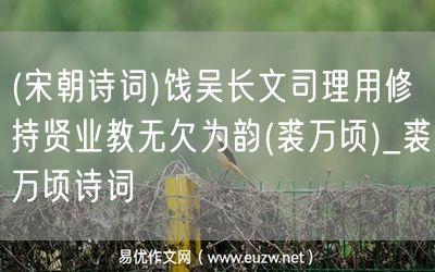 易優(yōu)作文網(wǎng)——(宋朝詩詞)餞吳長文司理用修持賢業(yè)教無欠為韻(裘萬頃)_裘萬頃詩詞