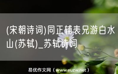 (宋朝詩詞)同正輔表兄游白水山(蘇軾)由易優(yōu)作文(易優(yōu)悅讀)為大家精心整理發(fā)布,學作文,學閱讀,提升語文閱讀寫作能力,就來易優(yōu)悅讀。作文培訓,閱讀培訓,易優(yōu)悅讀助力每個孩子成為語文學霸。