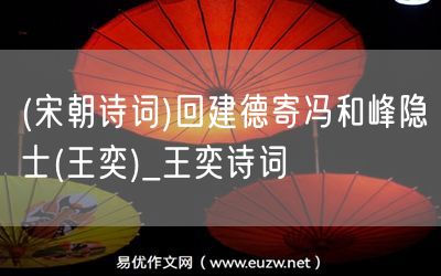 易優(yōu)作文網(wǎng)——(宋朝詩詞)回建德寄馮和峰隱士(王奕)_王奕詩詞