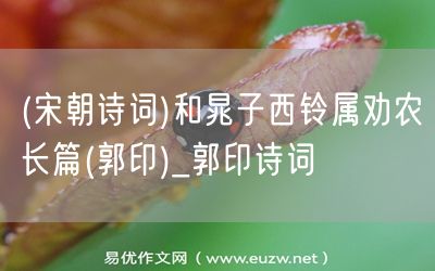 易優(yōu)作文網(wǎng)——(宋朝詩詞)和晁子西鈴屬勸農(nóng)長篇(郭印)_郭印詩詞