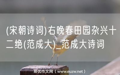 易優(yōu)作文網(wǎng)——(宋朝詩詞)右晚春田園雜興十二絕(范成大)_范成大詩詞