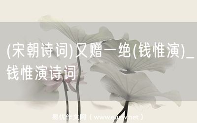易優(yōu)作文網(wǎng)——(宋朝詩詞)又贈一絕(錢惟演)_錢惟演詩詞