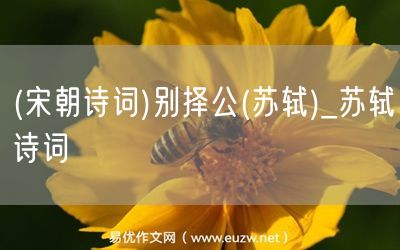 (宋朝詩詞)別擇公(蘇軾)由易優(yōu)作文(易優(yōu)悅讀)為大家精心整理發(fā)布,學(xué)作文,學(xué)閱讀,提升語文閱讀寫作能力,就來易優(yōu)悅讀。作文培訓(xùn),閱讀培訓(xùn),易優(yōu)悅讀助力每個(gè)孩子成為語文學(xué)霸。