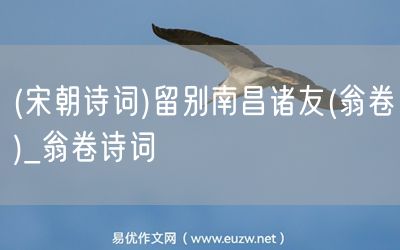(宋朝詩詞)留別南昌諸友(翁卷)由易優(yōu)作文(易優(yōu)悅讀)為大家精心整理發(fā)布,學(xué)作文,學(xué)閱讀,提升語文閱讀寫作能力,就來易優(yōu)悅讀。作文培訓(xùn),閱讀培訓(xùn),易優(yōu)悅讀助力每個孩子成為語文學(xué)霸。