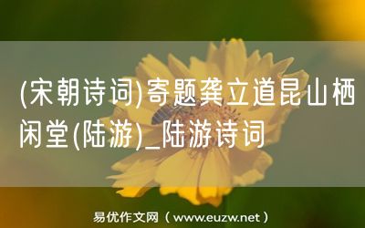 (宋朝詩詞)寄題龔立道昆山棲閑堂(陸游)由易優(yōu)作文(易優(yōu)悅讀)為大家精心整理發(fā)布,學作文,學閱讀,提升語文閱讀寫作能力,就來易優(yōu)悅讀。作文培訓,閱讀培訓,易優(yōu)悅讀助力每個孩子成為語文學霸。