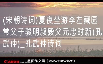 (宋朝詩詞)夏夜坐游李左藏園常父子駿明叔毅父元忠時(shí)新(孔武仲)由易優(yōu)作文(易優(yōu)悅讀)為大家精心整理發(fā)布,學(xué)作文,學(xué)閱讀,提升語文閱讀寫作能力,就來易優(yōu)悅讀。作文培訓(xùn),閱讀培訓(xùn),易優(yōu)悅讀助力每個(gè)孩子成為語文學(xué)霸。