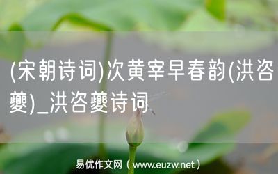 (宋朝詩詞)次黃宰早春韻(洪咨夔)由易優(yōu)作文(易優(yōu)悅讀)為大家精心整理發(fā)布,學(xué)作文,學(xué)閱讀,提升語文閱讀寫作能力,就來易優(yōu)悅讀。作文培訓(xùn),閱讀培訓(xùn),易優(yōu)悅讀助力每個孩子成為語文學(xué)霸。