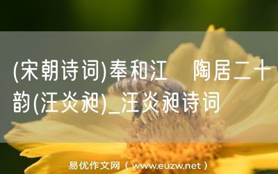 (宋朝詩詞)奉和江沖陶居二十韻(汪炎昶)由易優(yōu)作文(易優(yōu)悅讀)為大家精心整理發(fā)布,學(xué)作文,學(xué)閱讀,提升語文閱讀寫作能力,就來易優(yōu)悅讀。作文培訓(xùn),閱讀培訓(xùn),易優(yōu)悅讀助力每個孩子成為語文學(xué)霸。
