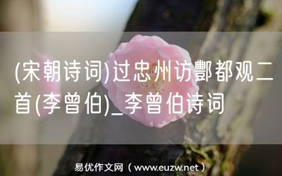 (宋朝詩(shī)詞)過(guò)忠州訪酆都觀二首(李曾伯)由易優(yōu)作文(易優(yōu)悅讀)為大家精心整理發(fā)布,學(xué)作文,學(xué)閱讀,提升語(yǔ)文閱讀寫作能力,就來(lái)易優(yōu)悅讀。作文培訓(xùn),閱讀培訓(xùn),易優(yōu)悅讀助力每個(gè)孩子成為語(yǔ)文學(xué)霸。