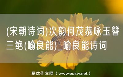 易優(yōu)作文網(wǎng)——(宋朝詩詞)次韻何茂恭詠玉簪三絕(喻良能)_喻良能詩詞