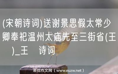 易優(yōu)作文網(wǎng)——(宋朝詩詞)送謝景思假太常少卿奉祀溫州太廟先至三街省(王铚)_王铚詩詞