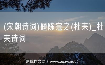 易優(yōu)作文網(wǎng)——(宋朝詩詞)題陳宗之(杜耒)_杜耒詩詞