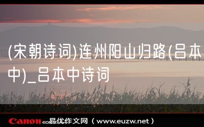 (宋朝詩詞)連州陽山歸路(呂本中)由易優(yōu)作文(易優(yōu)悅讀)為大家精心整理發(fā)布,學作文,學閱讀,提升語文閱讀寫作能力,就來易優(yōu)悅讀。作文培訓,閱讀培訓,易優(yōu)悅讀助力每個孩子成為語文學霸。