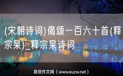 (宋朝詩詞)偈頌一百六十首(釋宗杲)由易優(yōu)作文(易優(yōu)悅讀)為大家精心整理發(fā)布,學作文,學閱讀,提升語文閱讀寫作能力,就來易優(yōu)悅讀。作文培訓,閱讀培訓,易優(yōu)悅讀助力每個孩子成為語文學霸。